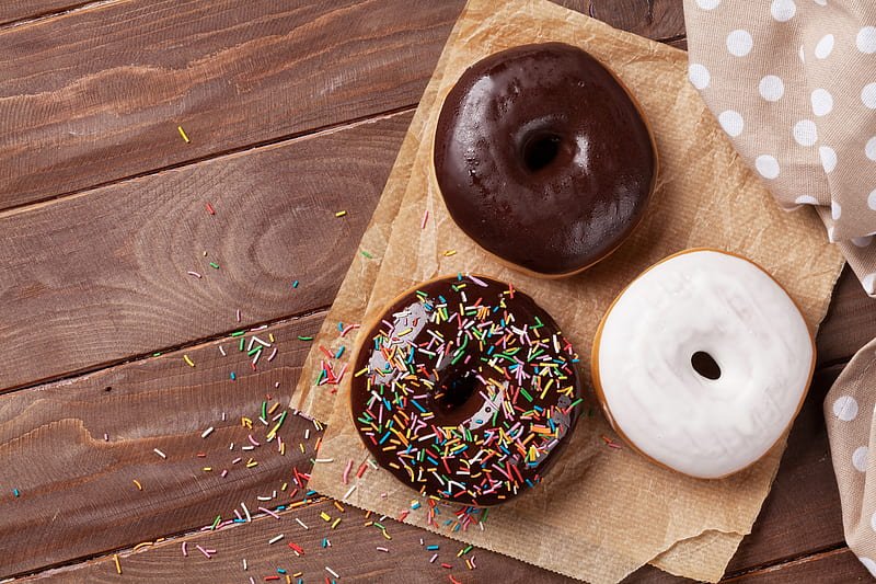 Donut is a soft , sweet , light dessert, it is fried and decorated with chocolates and creams, they are sugary and creamy, loved by every one .